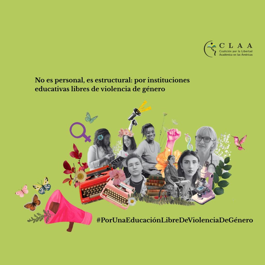 En el marco del Día Internacional para la Eliminación de la Violencia contra la Mujer, la Coalición por la Libertad Académica en las Américas (CLAA) lanza hoy, 25 de noviembre, la Campaña: “No es personal, es estructural: por instituciones educativas libres de violencia de género”.