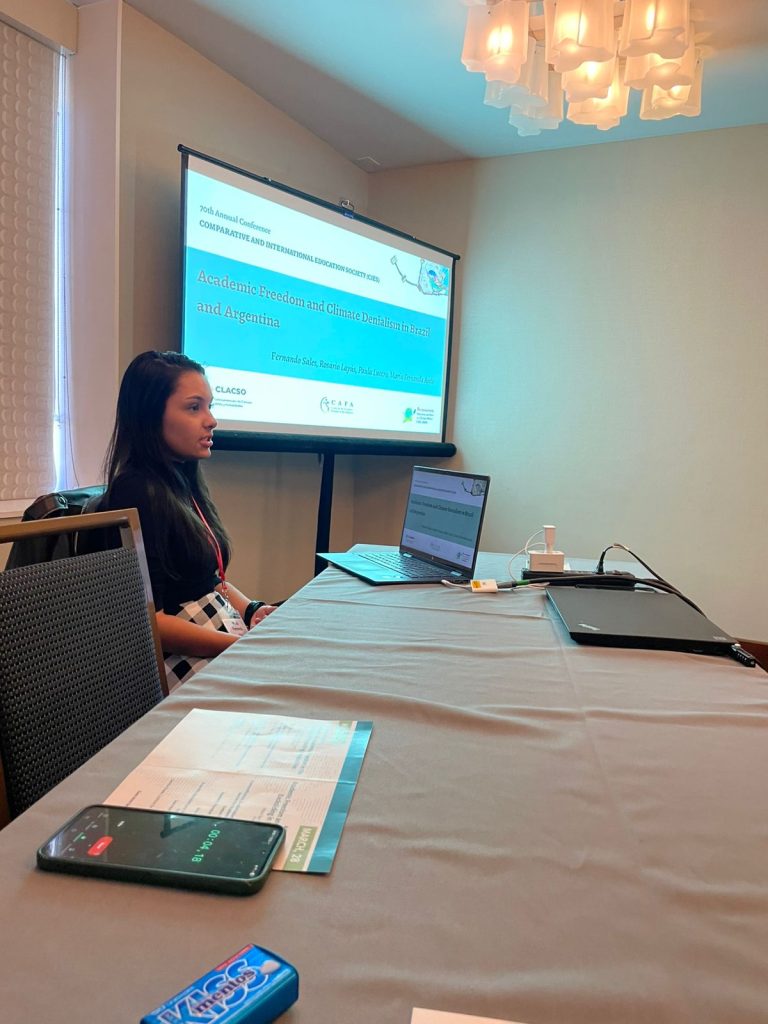 Por su parte, Maria Fernanda Silva Assis presentó resultados de una investigación comparativa sobre los impactos del negacionismo climático en la libertad académica en Brasil y Argentina. El estudio evidenció similitudes entre ambos países, particularmente en la instrumentalización del negacionismo científico para justificar políticas ambientales regresivas y en el uso de estrategias autoritarias que afectan la investigación en temas de clima y medio ambiente.