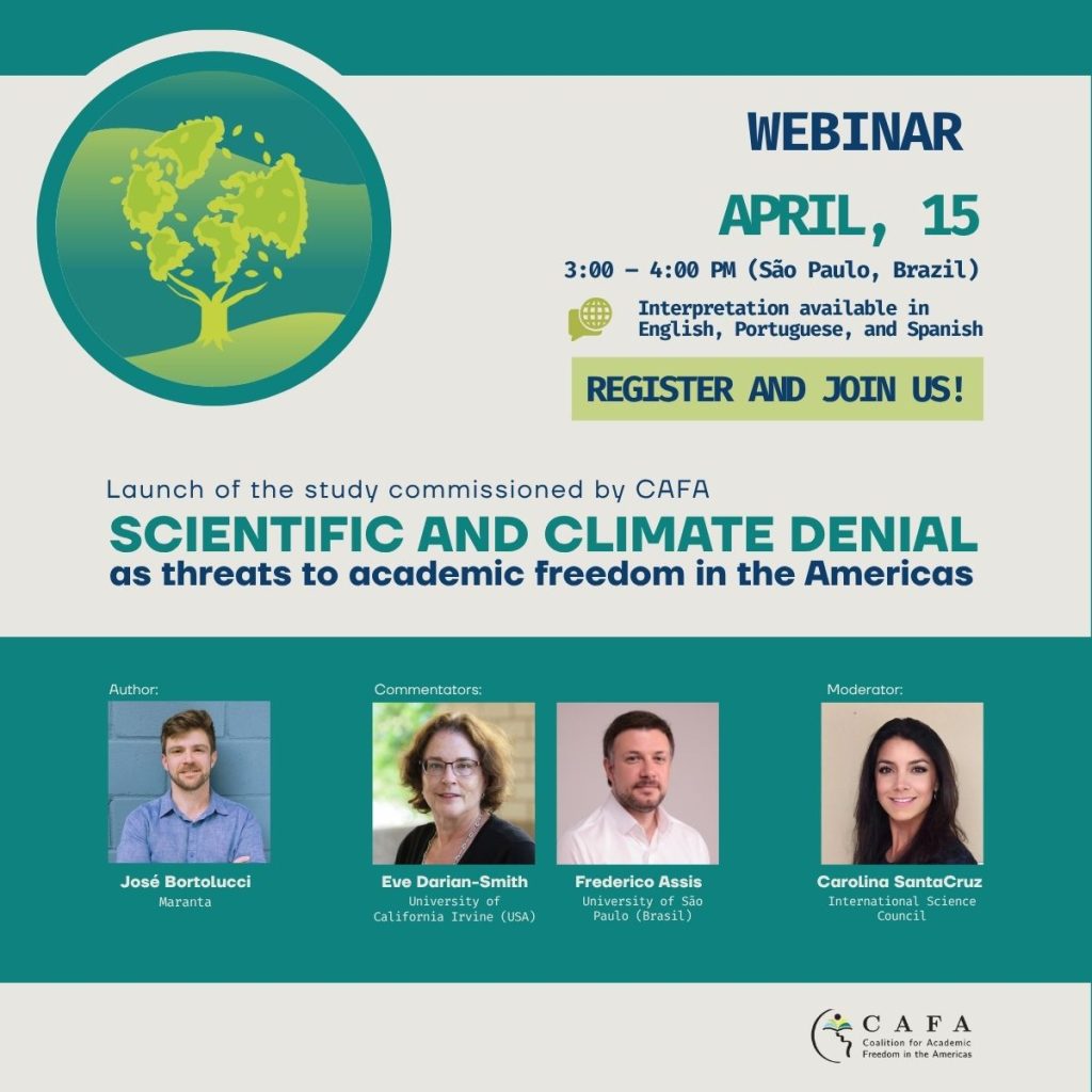 CAFA invites you to a webinar launching its new study: “Scientific and Climate Denial as Threats to Academic Freedom in the Americas”