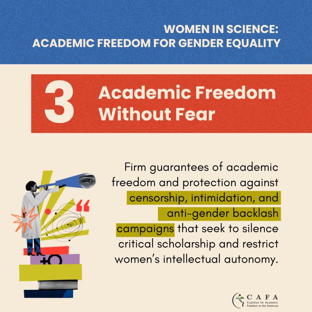 Over the coming weeks, the campaign will seek to make visible the barriers women face in science, strengthen public debate on academic freedom and gender, and promote concrete commitments to confront discrimination, ensure decent working conditions, and protect women’s intellectual autonomy.